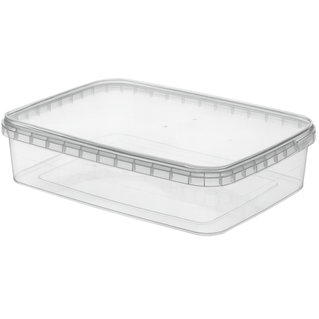 توضیح کوتاه: ظرف پلاستیکی شفاف با درب محکم، مناسب برای ذخیرهسازی مواد غذایی و حفظ وضوح و کارایی.
