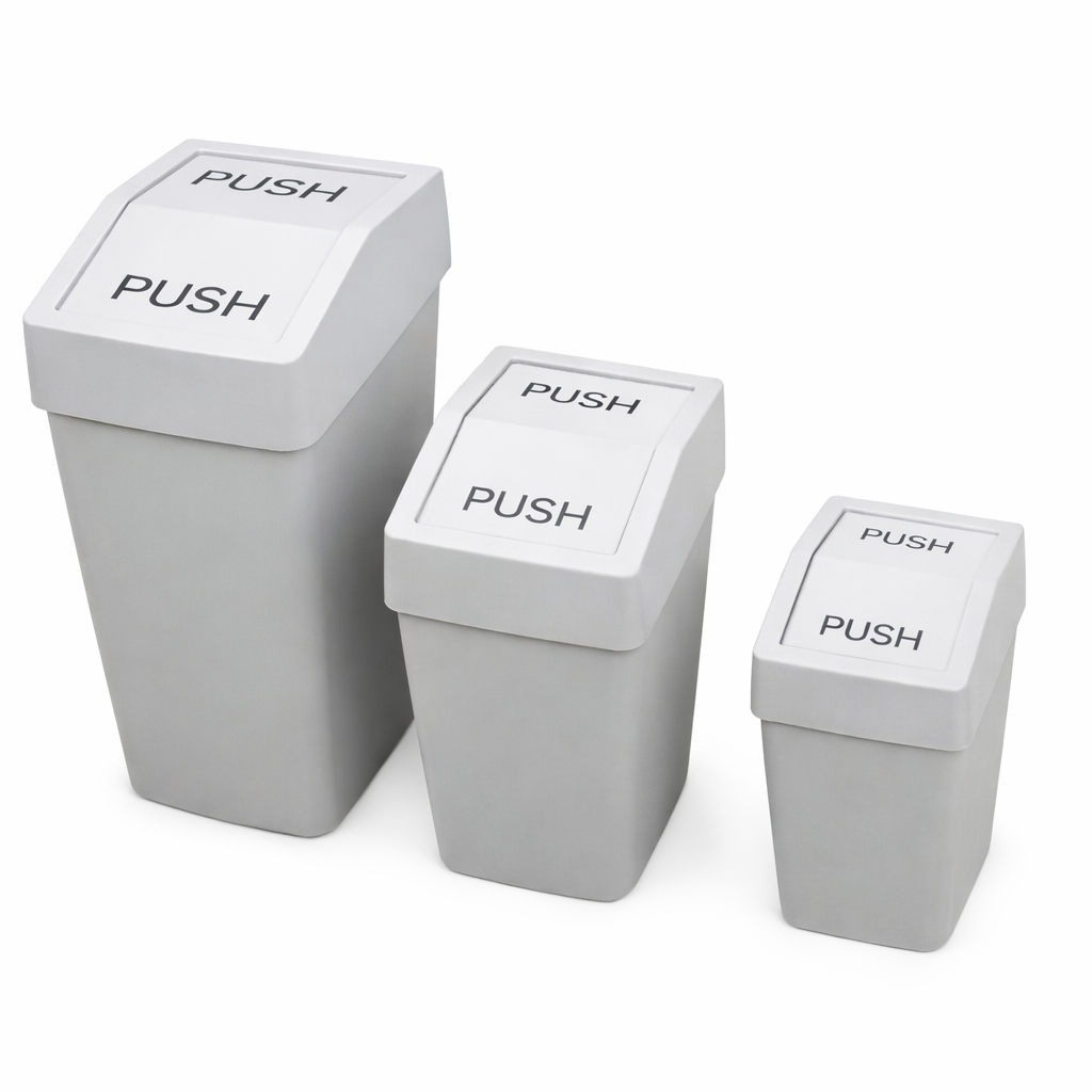 سطل زباله فشاری دربدار با طراحی ساده و کاربردی، مناسب استفاده در آشپزخانه، سرویس بهداشتی، اتاق و محیطهای اداری. این سطلها با درب PUSH استفاده آسان و بهداشتی را فراهم کرده و از انتشار بوی نامطبوع جلوگیری میکنند. عرضهشده در سایزهای مختلف برای پاسخگویی به نیازهای گوناگون و مناسب فضاهای کوچک و بزرگ.